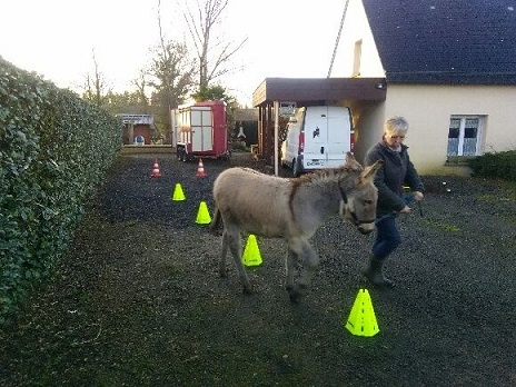 C'est d'abord, mettre l'animal en confiance, l'âne aime comprendre avant de faire : une hésitation peut avoir lieu au premier abord .