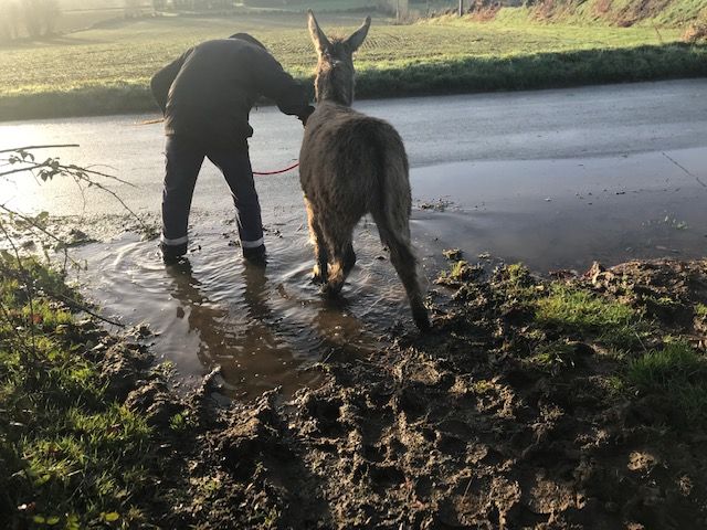 C'est pour éviter ce risque que ses nouveaux propriètaires on fait le choix de l'accompagner de kaline une jolie ânesse du Cotentin.